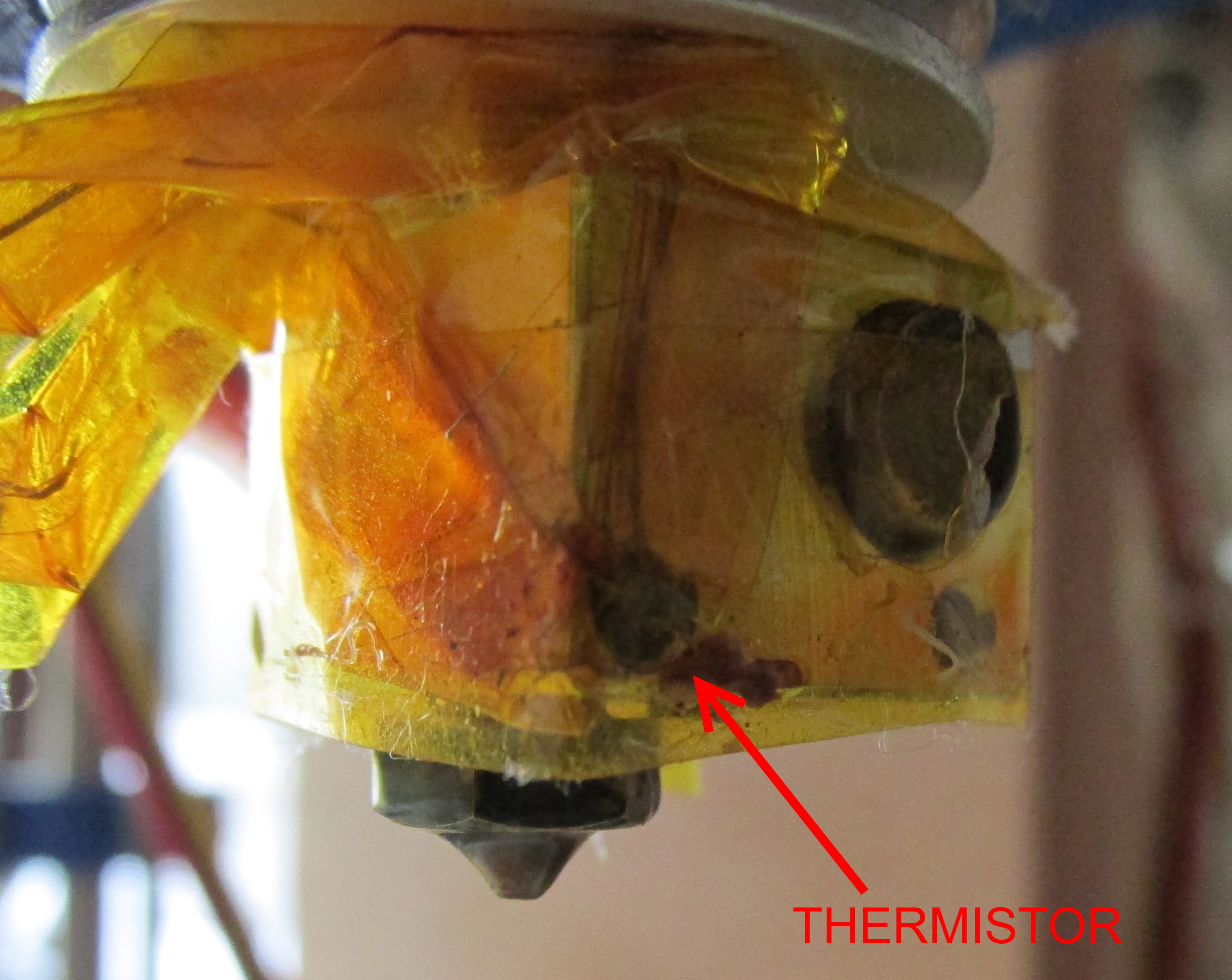 Notice that the blue fiberglass must cover the legs of the thermistor all the way down to the sensor.